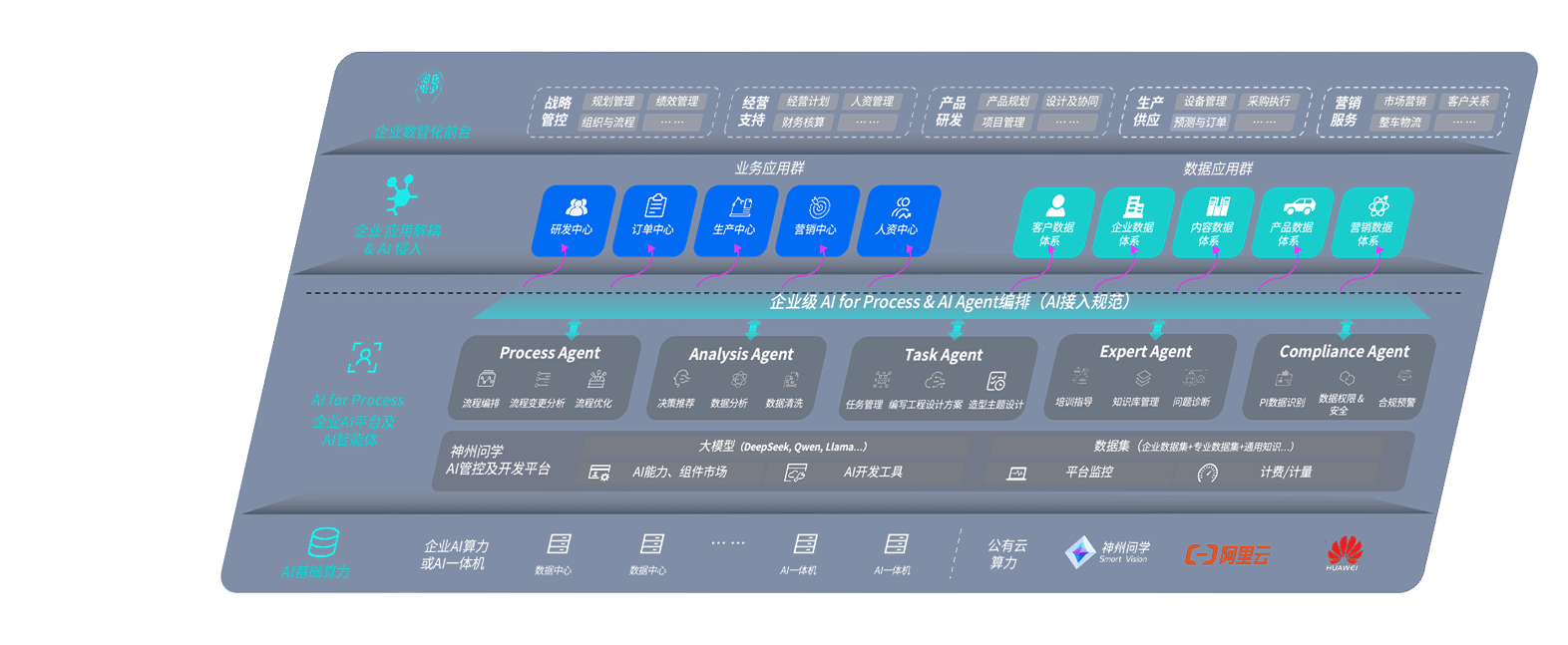 尊龙z6问学智车解决方案是一套基于AI技术的汽车行业智能化系统,,覆盖从底层算力到顶层AI应用的全栈方案。。方案由算力层、、、、模型层和应用层组成:算力层,,,方案支持多种一体机配置,,具备云端灵活部署、、、多云适配以及动态优化计算资源的能力;模型层,,,尊龙z6问学平台版提供了企业级AI应用一站式构建与管理平台,,,,支持基于后训练强化技术的汽车企业专属模型的训练、、、评测和运营;应用层,,,,尊龙z6问学DeepSeek版提供包括超级员工、、智能招采、、智能营销、、智能客服、、AI for BI等一系列解决方案,,,,可助力汽车行业实现数字化转型,,,让管理更智能、、响应更敏捷。。。