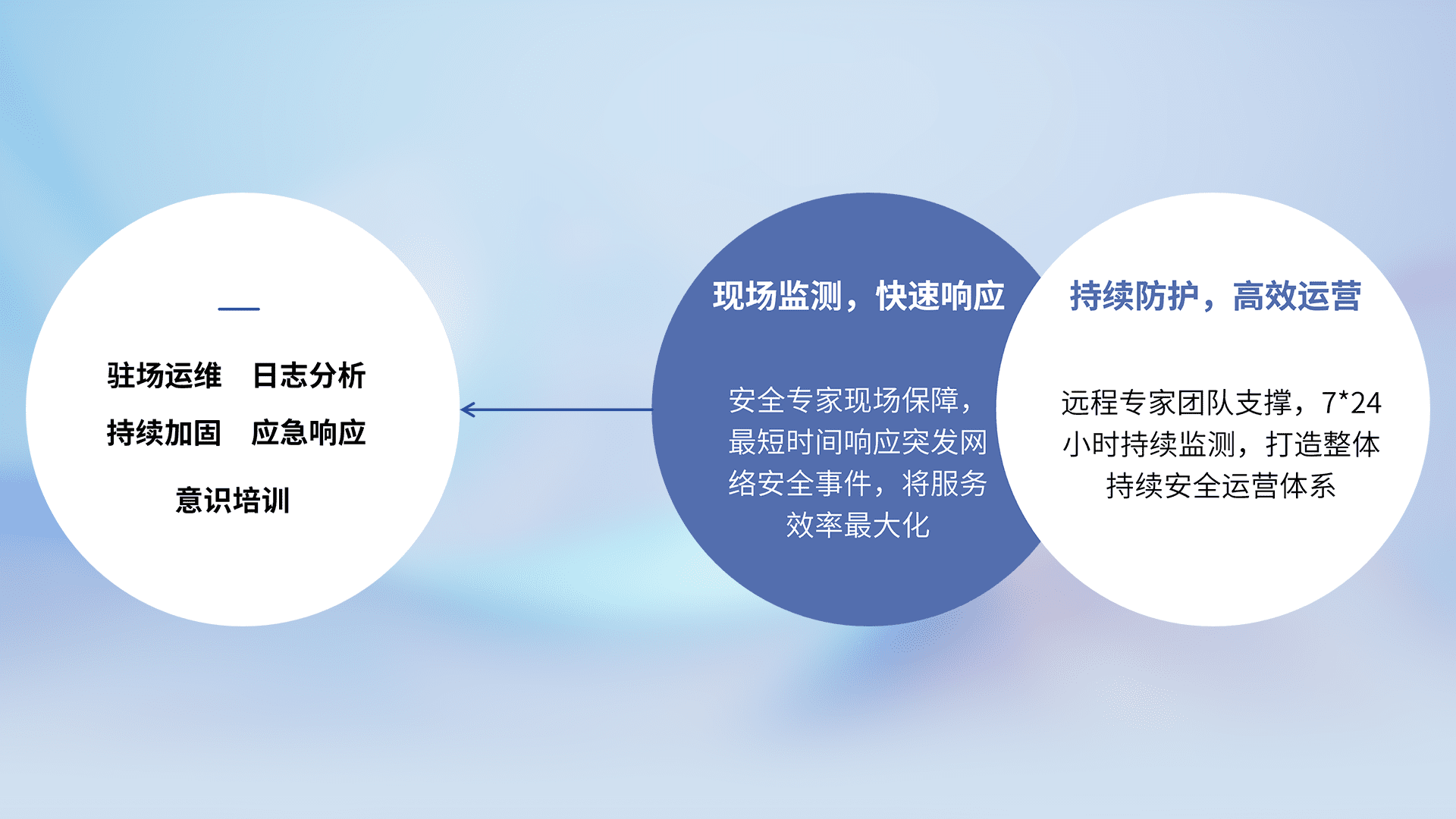 7X24小时持续监测安全事件,保持安全策略有效性,降低资产脆弱性风险,,,,精准拦截黑客攻击,,,,减少被黑客利用的机会,,第一时间遏制,,,降低损失。。